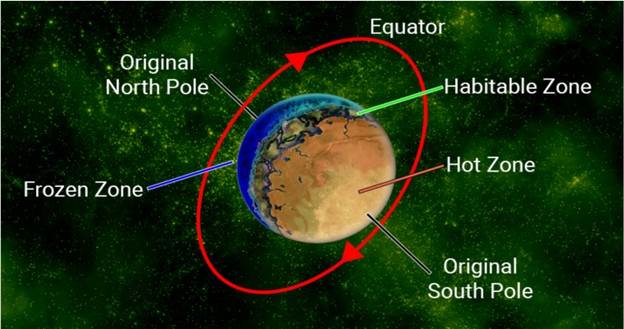 It's a planet of howling extremes, one side permanent day and the other total night. Its "south" half is now locked eastward toward the sun it circles. Its "northern" half is strangled by darkness, constant subfeezing temperatures and relentless storms. The planet now spins perpendicular to the sun along it's east west axis.